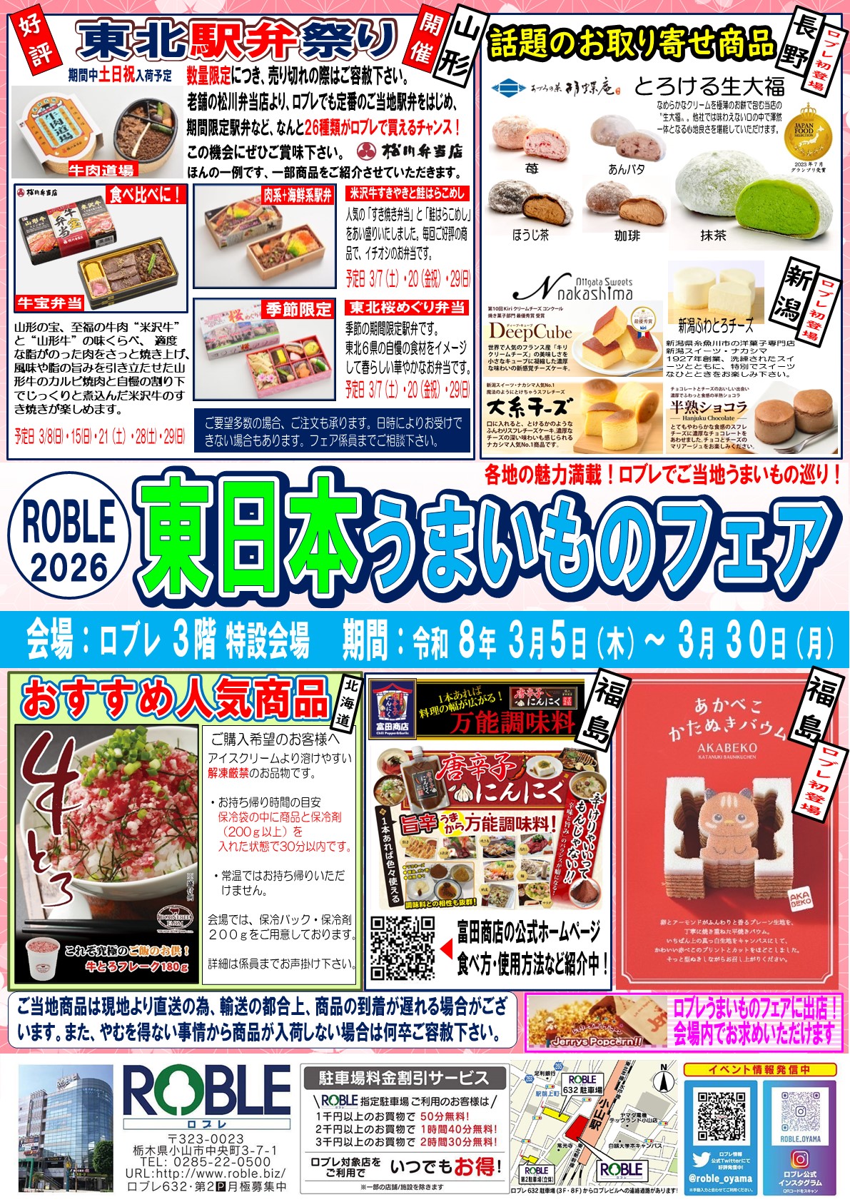 ロブレご当地物産展 「東日本うまいものフェア」開催 のお知らせ【3月5日(木)~3月30日(月)まで】